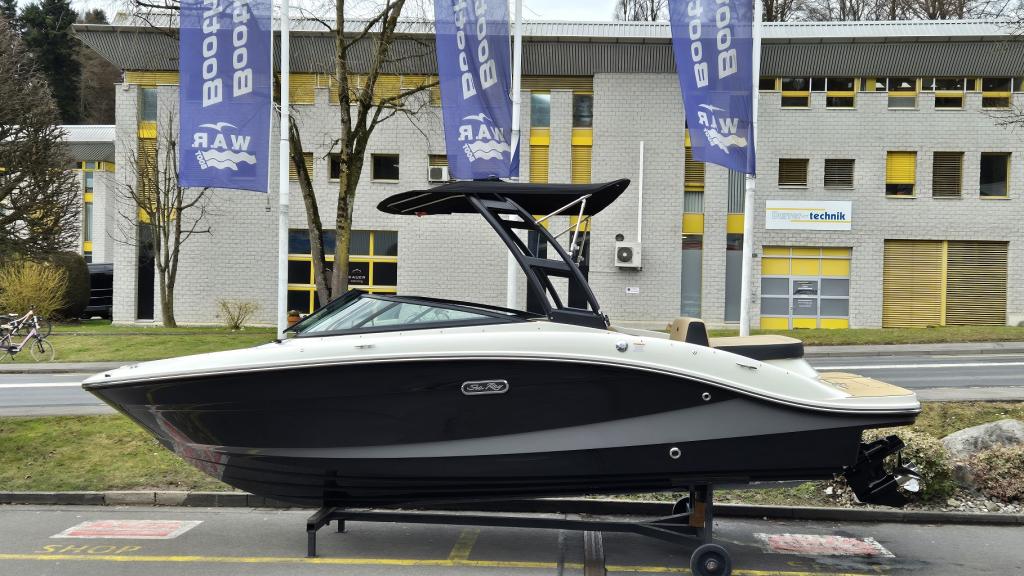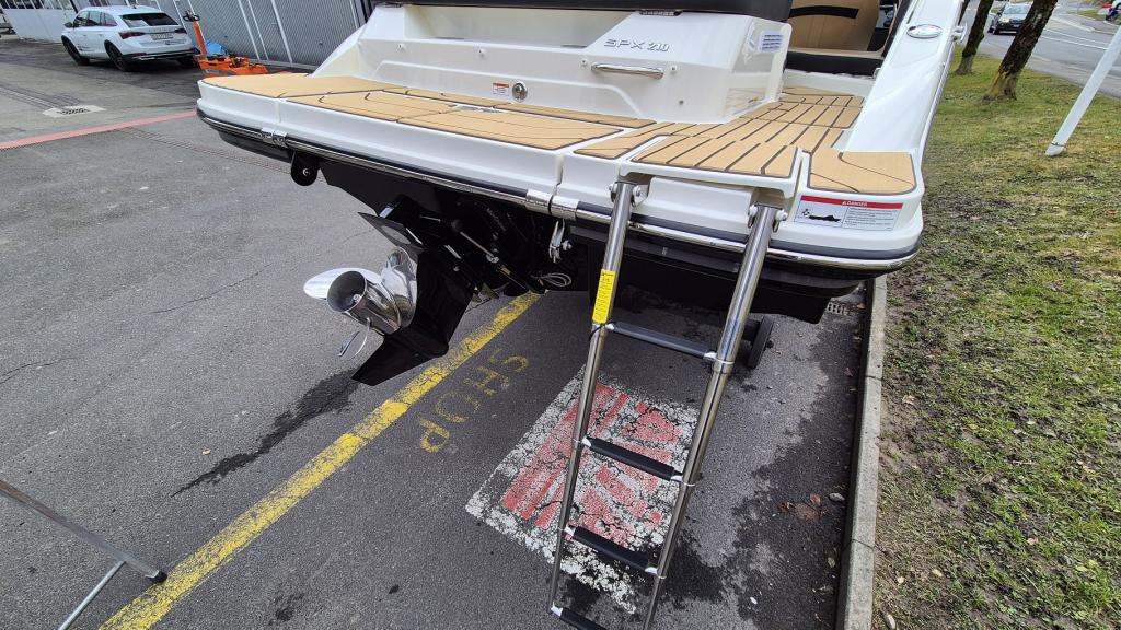 Bimini Sonnendach, Bug- & Cockpitdecke, Füllkissen Bug, Rückenpolster Durchgang, Füllkissen Seitendurchgang Heck, Cockpittisch Teak rund, Fenderclips; Wakeboard Tower schwarz, BiminiTop (ohne Rack & Rückspiegel), Gebogene / runde Windschutzscheibe, Cockpitkühlschrank 12V, Cockpitbodenbelag SeaDek geklebt, Cockpitbeleuchtung LED (blau), Selbstlenzendes Cockpit, Stereoanlage FUSION®, Batteriewahlschalter mit Zusatzbatterie, Echolot und Wassertemparaturanzeige, Digital Dash mit SmartCraft Connect NSX 7’’, Seekarte C-Map, Luftpumpe 12V für Wassersportgeräte, Heckdusche, Towerlicht LED 360° montiert, Unterwasserplattform manuell absenkbar, Badeplattformbelag mit SeaDek, Autom. Feuerlöschsystem im Motorraum, Handfeuerlöscher 2kg, Wasserlinie Gelcoat – Boot Stripe